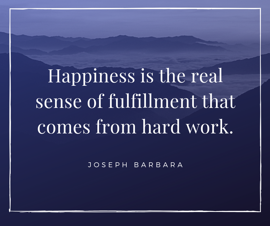 Happiness is the real sense of fulfillment that comes from hard work